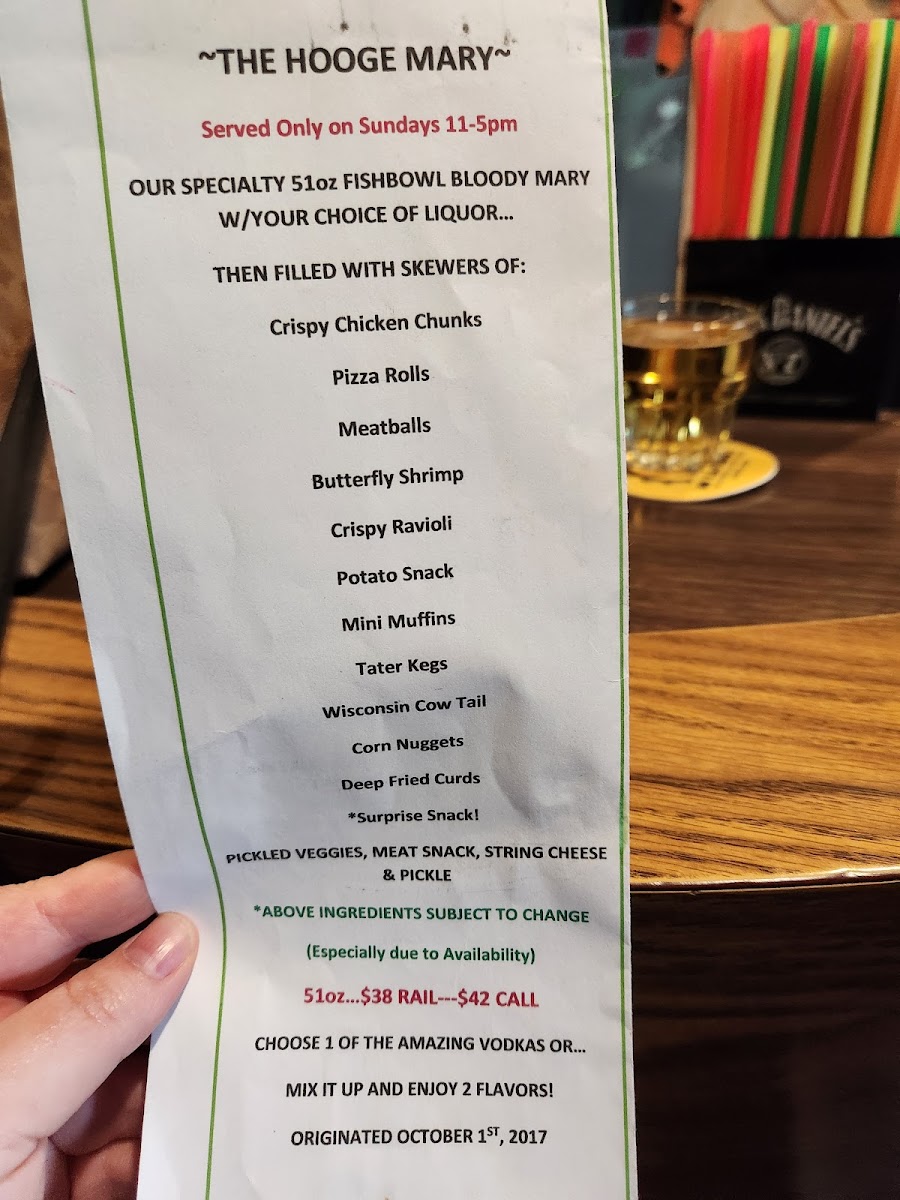 Welcome to Hoozels Bar, nestled in the heart of Wisconsin Rapids. This welcoming neighborhood bar boasts not just a vibrant atmosphere, but also exceptional service that keeps patrons coming back for more. With a diverse selection of alcoholic beverages, including their famed giant Bloody Mary, Hoozels is perfect for gatherings with friends or leisurely afternoons.